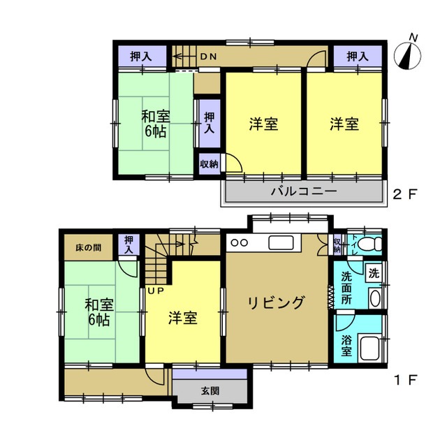 ◾️First Floor (1F): Upon entering, you are welcomed into a central Living/Dining/Kitchen area that serves as the heart of the home. This floor houses all essential utilities, including a separate bathroom with a tub, a washroom with laundry space, and a toilet. There are two bedrooms on this level: a Western-style room located centrally, and a traditional 6-tatami mat Japanese room (approx. 10 m² / 107 ft²). The Japanese room features classic elements such as a Tokonoma (alcove), ample closet space (Oshiire), and a charming south-facing enclosed veranda (Engawa) that brings in natural light. ◾️Second Floor (2F): The upper floor is dedicated to privacy, featuring three bedrooms. It includes another 6-tatami mat Japanese room (approx. 10 m² / 107 ft²) and two Western-style rooms of similar proportions. The two Western rooms have direct access to a wide, south-facing balcony, ideal for drying laundry or relaxing in the sun. All rooms on this floor are equipped with built-in storage closets, maximizing living space.