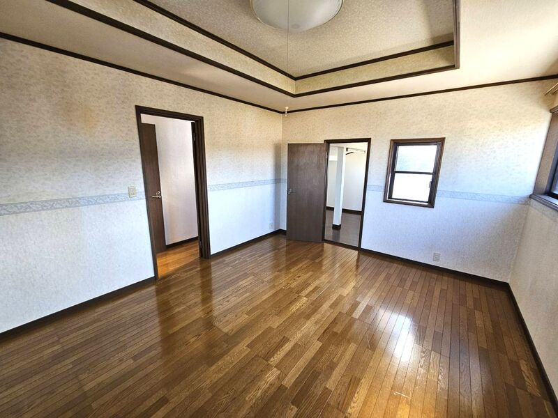 The upper floor is dedicated to privacy, housing four Western-style bedrooms (typically approx. 10–13 m² / 107–140 ft² each based on standard Japanese sizing). A convenient washbasin is located in the hallway. A key highlight is the large, attached Storage Room (Mono-oki) accessible from one of the bedrooms, providing significant space for luggage, seasonal gear, or supplies.